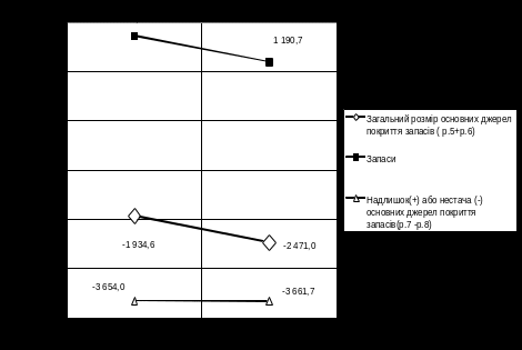 Як показують результати розрахунків коефіцієнтів покриття запасів (Додаток Е, рис.2.7), у 2004 2005 роках загальних джерел покриття запасів було недостатньо, тобто у підприємства – нестача коштів для утримання запасів.