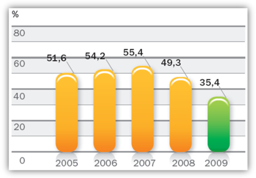 Оптимизация бизнес-процессов, штатной численности и структуры затрат позволят снизить удельный вес непроцентных расходов в совокупных расходах Банка до уровня ниже 50% даже с учетом возможного роста отчислений в резерв по ссудной задолженности.