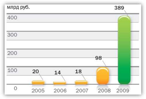 Активы Группы по МСФО увеличились в 2009 году на 5,5% и составили 7105,1 млрд. руб. Основной источник роста активов — увеличение портфеля инвестиционных ценных бумаг, имеющихся в наличии для продажи. Данный портфель вырос в 3 раза — до 848,7 млрд. руб. (включая ценные бумаги, заложенные по договорам РЕПО), (см. Приложение 4,5).