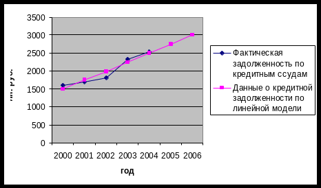 Фактические и расчетные данные по кредитной задолженности представлены в виде графика.