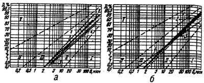 | Табачная пыль, как и другие промышленные пыли, полидисперсна, т. е. состоит из частиц различного размера. Дисперсный состав табачной пыли определен с помощью центробежной воздушной сепарации на приборе «Бако». Дисперсный состав пыли подчиняется логарифмически нормальному закону распределения частиц по размерам. На (рис. 2,а) показан дисперсный состав табачной пыли (геля), осевшей в папиросных цехах ряда табачных фабрик. Более значительное содержание мелких фракций в пыли говорит о большем измельчении вследствие меньшей влажности сырья на данной фабрике. Дисперсный состав пыли также зависит от места отбора: более крупные фракции осаждаются ближе к источнику пылеобразования. На (рис.2,б) представлен дисперсный состав пыли, отобранной в системах пневмотранспорта листового табака. Доля мелких фракций здесь несколько выше, чем на предыдущем графике. Удельная поверхность табачной пыли составляет от 1810 см2/г (осажденная в циклоне I ступени очистки) до 7260 см2/г (витающая в воздухе папиросного цеха). Условный средний диаметр частиц пыли составляет соответственно от 18,5 до 4,64 мкм. При увеличении удельной поверхности частиц повышается их химическая и физическая активность. |