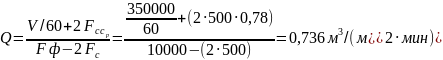 Вычисляем объем газа, расходуемого на обратную продувку, условно принимая, что скорость газа при обратной продувке такая же, как и при фильтровании: