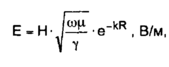 где со - частота электромагнитных колебаний; у - удельная проводимость вещества экрана; \i - магнитная проницаемость этого вещества; к - коэффициент затухания; R - расстояние от входной плоскости экрана до рассматриваемой точки.