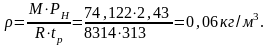 Плотность насыщенного пара при расчетной температуре:
