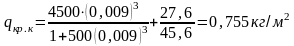 Определяем удельное критическое количество пожарной нагрузки qкр.к., кг/м2, для кубического помещения объемом V, равным общему исследуемого помещения: