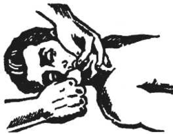 Так само роблять штучне дихання способом «рот до носа», тільки повітря вдувають через ніс, а рот потерпілого закривають. Ефективність штучного дихання підвищується, коли застосовувати спеціальні S‑подібні повітроводи, які забезпечують прохідність верхніх дихальних шляхів. Положення голови потерпілого під час виконання штучного дихання, очищенні рота і глотки та саме проведення штучного дихання показано на рис. 1–5.
