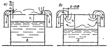 Бортовой отсос называют простым (рис. 2,а), когда щели расположены в вертикальной плоскости, и опрокинутым (рис. 2, б),