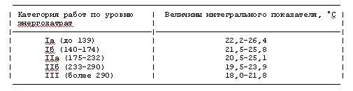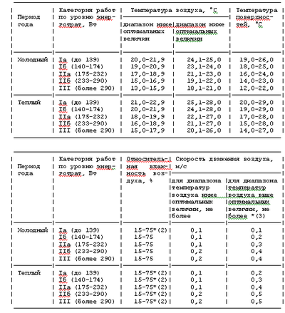 При этом абсолютные значения температуры воздуха не должны выходить за пределы величин, указанных в табл.2 для отдельных категорий работ.