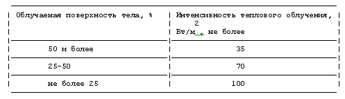 воздуха не превышают 0,6 м/с, а интенсивность теплового облучения - 1200 Вт/м2 .
