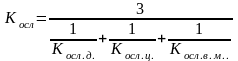 Коефіцієнт ослаблення залежить від тривалості перебування людей на протязі доби на відкритій місцевості, в будинках і виробничих будівлях. В звичайному режимі приймають, що робітники і службовці знаходяться дома / Косл.д./, на роботі в цеху / Косл.ц./ і на відкритій місцевості /Косл.в.м./ по 8 годин на протязі доби.