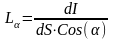 Яркость поверхности (L)- отношение силы света dF излучаемого элемента поверхности dS под углом