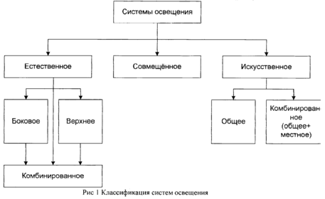 Системы производственного освещения можно классифицировать в зависимости от источника света и по конструктивному исполнению (рис.1).