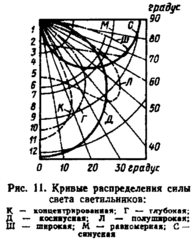 - кривая силы света в полярной системе координат - характеризует светильник с точки зрения распределения световой энергии