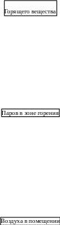 При горении в зоне реакции выделяется теплота Q. Часть этого тепла передается внутрь зоны горения Qг, а другая – в окружающую среду Qcp. Внутри зоны горения теплота расходуется на нагрев горючей системы, способствует продолжению процесса горения, а в окружающей среде тепловые потоки воздействуют на горючие материалы, конструкции и при определённых условиях могут вызвать воспламенение их или деформацию.