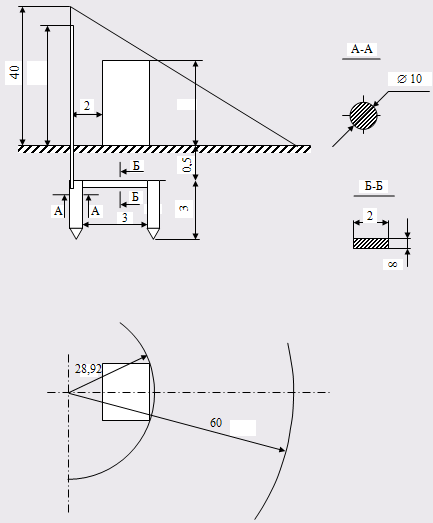 Вывод: В качестве молниезащиты здания гаража для парковки тракторов площадью 1200 м2 (30х40 м) и высотой 12 м необходимо использовать столб высотой 36,8 м, на который установлен молниеприемник размером 4,6 м. Молниеотвод расположен на расстоянии 2 м от гаража. В качестве заземлителя используется заглубленный на 0,5 м искусственный двухстержневой стальной заземлитель размерами: полоса 40х4 мм длиной 3 м, стержни диаметром d = 10 мм длиной 3 м. Поверхность земли вокруг молниеотвода асфальтируется на r = 2 м. Схема молниеотвода представлена на рис.2.