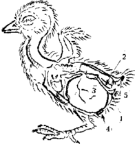 Рис. 2. Размещение запаса желтка у суточного цыпленка: