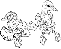 Рис. 3. Суточные гусята с втянутым (норма) и невтянутым (нарушение) желтком.
