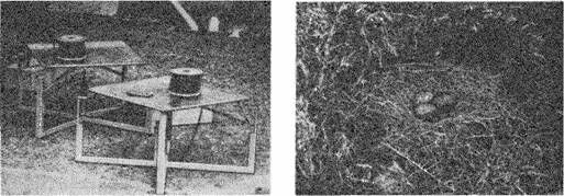 Рис.12. Эти весы для взвешивания гнезда можно расположить в ямке, выкопанной под гнездом серебристой чайки. Затем гнездо укладывают на платформу весов. Поведение птиц на гнезде при этом не изменяется, а изменения массы гнезда можно регистрировать с помощью соответствующего электронного устройства.