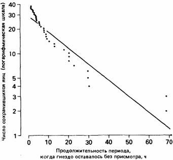 | Рис.11. Сохранность яиц серебристой чайки, оставшихся на виду у хищников в отсутствие владельцев гнезда. |