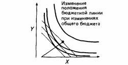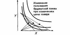 | Рис.21. Изменение положения бюджетной линии при изменениях цены товара X. Обратите внимание на изменения оптимального предпочтения. |