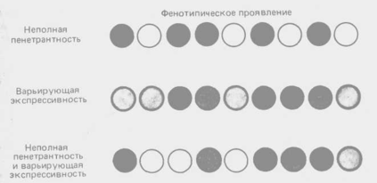 Оба понятия - пенетрантность и экспрессивность - были введены в 1925 г. Н.В. Тимофеевым-Ресовским для описания варьирующего проявления генов (рис. 4).