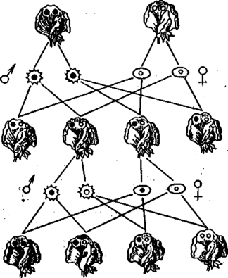 Схема менделевского скрещивания горохов пурпурноцветковых с белоцветковыми
