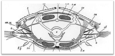 Рис. 1. Поперечный разрез через туловищный сомит (чешуйчатый сегмент).
