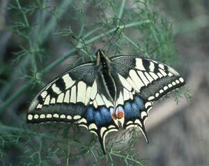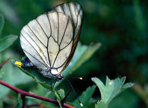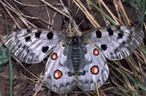 АПОЛЛОН (Parnassіus apolo) звичайний у нас із усіх кавалерів, що не мають залозисті хвостиків на задніх крилах. Він досягає в розмаху крил 7-9 див; передні крила білі, по краях прозорі, як стекло, з чорними плямами; задні крила білі з двома червоними з білою серединою вічками, облямованими чорним. Метелика звичайно не торкають птаха. Про своїй "неїстівності" вона попереджає сама: якщо неї потривожити, вона валиться на землю, розпинає крила, демонструючи червоні плями. При цьому вона скребе ніжками по нижній стороні крил, відтворюючи шиплячий