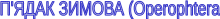 П'ЯДАК ЗИМОВА (Operophtera brumata) многоядна: її гусениці можуть ушкоджувати понад 100 деревні породи. Тому вони шкодять не тільки в лісах і парках, але й у плодових садах. У метеликів різко виражений статевий диморфізм. Самці мають нормально розвиті крила, що досягають у розмаху 2-2,5 див, жовтувато- або бурувато-сірого кольору з темними, хвилястими поперечними лініями. У самок же крила сильно укорочені, і вони нездатні літати. У нас цей вид розповсюджений усюди, крім північних районів. Частіше шкодить у нечорноземній смузі. Метелика виходять дуже пізно - наприкінці вересня, а на півдні навіть у листопаду. Вони відкладають зимуючі яйця в складки кори біля бруньок, звичайно на вершинах дерев. Гусениці отрождаются в період набрякання бруньок. Вони вгризаються в бруньки, а потім починають об'їдати листи. Дорослі гусениці ясно-зеленого кольору з зеленою головою і 3 білими лініями з боків тіла; довжина їх близько 2 див. При масовому розмноженні вони сильно ушкоджують яблуні, груші й інші плодові дерева, а в лісах - дуби, ільмові й інші породи. Ушкоджені ділянки мають жалюгідний вигляд: дерева коштують оголеною, обплутаною павутиною, а гусениці гронами звисають з гілок на павутинках. Наприкінці травня - червні гусениці окукливаются в ґрунті на глибині до 10 див або в лісовій підстилці біля стовбурів дерев у коконі з ґрунту. Лялечка розвивається біля чотирьох місяців.