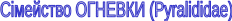 Сімейство ОГНЕВКИ (Pyralіdіdae) Сімейство представлене величезною кількістю видів дрібні або середньої величини метеликів, здебільшого яркою і строкатим фарбуванням, із шовковистим блиском. Передні крила або трикутні, або сильно витягнуті з рівнобіжними краями; задні крила широкі. У спокої крила складені на зразок плоского трикутника або у виді трубки обгорнуті навколо тіла. При великій видовій розмаїтості огневки відрізняються і розмаїтістю зв'язків із зовнішнім середовищем. Їхніх гусениць можна зустріти й у лісах, і на лугах, де вони живуть як на трав'янистих, так і на деревних рослинах, причому одні види віддають перевагу квітам або плодам, інші - листи, треті - стебла або корені. Серед таких растительноядных форм зустрічаються небезпечні шкідники. Є види, що харчуються тваринною їжею, нарешті, що саме цікаве, у деяких огневок спостерігаються цікаві пристосування до обитанию у водному середовищі.
