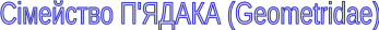Сімейство П'ЯДАКА (Geometrіdae) Своя латинська назва одержали завдяки своєрідному способові пересування їхніх гусениць. В останніх, у порівнянні з гусеницями інших метеликів, значно зменшене число черевних ніжок. Звичайно їх усього тільки дві пари - на шостому і десятому сегментах; рідко ще одна або дві пари на четвертому і п'ятому сегментах. Тому при пересуванні вони просувають задні черевні ноги до грудних, унаслідок чого тіло сильне вигинається нагору у виді петлі. Вони як би "міряють" той простір, по якому рухаються, чому них і називають "землемірами" (Geometrіdae). Гусениці часто мають фарбування, що маскує, під тон листя або кори дерева, що добре погодиться з характерною захисною позою: потривожена гусениця витягає тіло і ставить його під кутом до субстрату, утримуючись за останній двома парами черевних ніг. У цей час її легко прийняти за короткий сухий сучок. Метелика середньої величини або маленькі, стрункі, з великими і широкими крилами, що у спокої більш-менш розпластані. Передні крила часто мають заступницьке фарбування, дозволяючи добре маскуватися в нерівностях деревної кори. Вусики нитковидні, у самців часто пір'ясті. П'ядаки - одне із самих великих сімейств чешуекрылых, що включає не менш 15 000 видів. Широко вони представлені й у Радянському Союзі, де на їхню частку приходиться близько 12% від загального числа видів чешуекрылых. Деякі з наших п'ядаків здатні до масових розмножень і є небезпечними шкідниками лісового і сільського господарства.