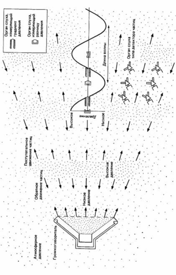 Звук обладает многими свойствами, на которые животное может реагировать. Когда он проходит через среду, ее частицы движутся взад и вперед, создавая осциллирующие волны давления. Величина этих волн определяет интенсивность воспринимаемого звука. Скорость его зависит от плотности среды распространения и не зависит от интенсивности. В воздухе звук распространяется со скоростью около 340 м в секунду, причем в горячем воздухе - быстрее, чем в холодном. В воде его скорость приблизительно в четыре раза выше, чем в воздухе.