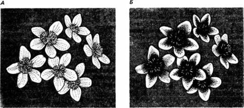 Рис.2. Цветки, которые при дневном свете кажутся нам белыми, имеют характерный рисунок, если рассматривать их в ультрафиолетовом свете. Пчелы воспринимают ультрафиолетовый свет и реагируют на указатели нектара.