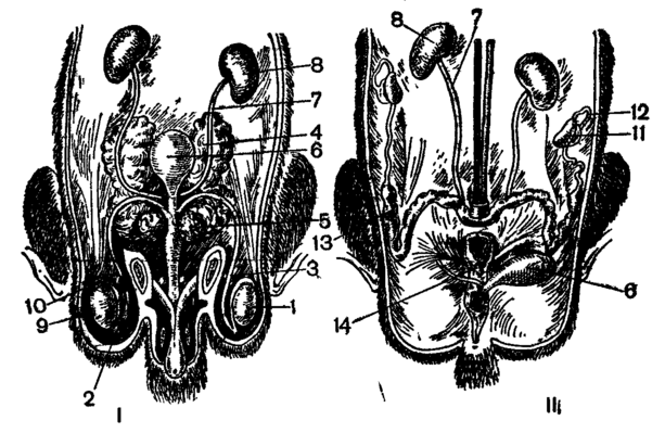 Рис.11. Мочеполовые органы крысы (I – самца, II – самки)