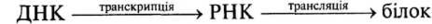 Трансляція. Процес переведення генетичної інформації, яка міститься в іРНК, у специфічну послідовність амінокислот у молекулі білка називається трансляцією. Саме в результаті трансляції іРНК відбувається синтез білка в клітині. Він здійснюється на рибосомі, яка складається з двох субодиниць — великої і малої. Субодиниці містять рибосомальні РНК і білки.