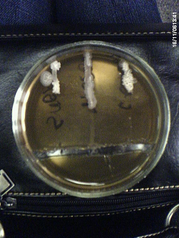 Рисунок 1. Чувствительность микроорганизмов (Bacillus subtilis, Bacillus mesentericus, Bacillus cereus – на рисунке слева направо) к бензилпенициллину.