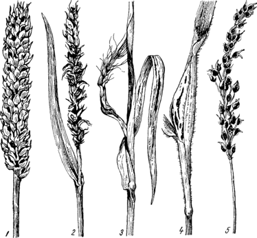 4 — пыльная головня проса; 5 — пыльная головня овса.