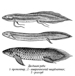 В роботі використовалось одинадцять джерел інформації, включаючи матеріали мережі Internet. В роботі дана характеристика надкласу Дводишних. Описані особливості родин Рогозубових і Чешуйчатникових.