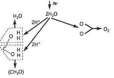 Під час фотосинтезу з простих неорганічних сполук (води та вуглекислого газу) синтезуються різноманітні органічні сполуки. В результаті відбувається перебудова хімічних зв'язків: замість С—О та Н—О виникають С—С та С—Н зв'язки, в яких електрони займають більш високий енергетичний рівень.