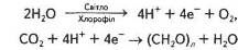 Отже, для водоростей, вищих рослин, у яких вода слугує донором електронів, підсумкове рівняння фотосинтезу матиме такий вигляд: