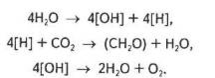 Згідно з цим рівнянням, в основі суті фотосинтезу лежить окисно-відновна реакція. За участі хлорофілу та енергії сонячних квантів вода фотоокиснюється, в результаті чого виділяються кисень та водень, останній і відновлює СО2 до рівня вуглеводів. Ці реакції відбуваються відповідно в світлову та темпову стадії фотосинтезу.