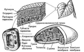 Особливості морфології, анатомії та фізіології листка повною мірою забезпечують здійснення його основної функції — фотосинтезу (рис. 2).