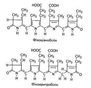 Хромофорною групою фікоціанінів є фікоціанобілін, фікоерит-ринів — фікоеритробілін (рис. 9).