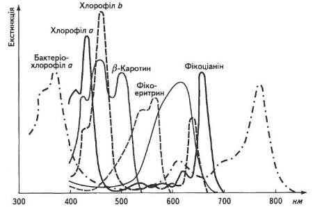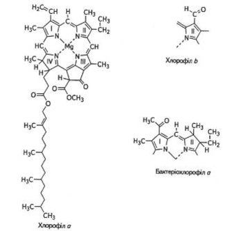 Встановлено, що хлорофіл у мембранах пластид перебуває у вигляді пігмент-ліпопротеїдних комплексів з різним ступенем агрегації. Особливості спектра дії фотосинтезу свідчать про те, що в процесах поглинання світла беруть участь і додаткові пігменти.