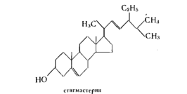 Стигмастерин С29H48О — один из наиболее распространенных фитостеринов, он содержится в большом количестве в соевом масле и сахарном тростнике. По структуре стигмастерин отличается от холестерина наличием двойной связи между 22 и 23-углеродными атомами и наличием этильной группы в положении 24: