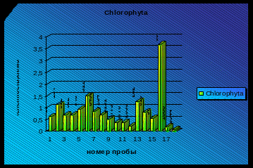 В течение почти всего периода вегетации прослеживается сильная вегетация представителей отдела зеленых. Доминирование зеленых наблюдается с мая по сентябрь, только в октябре численность сине-зеленых немного превышала развитие представителей отдела Chlorophyta.