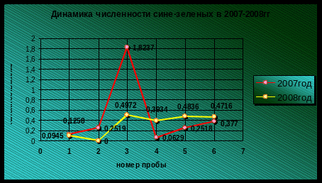 Диаграмма 10 - Динамика численности сине-зеленых водорослей в 2007-2008гг