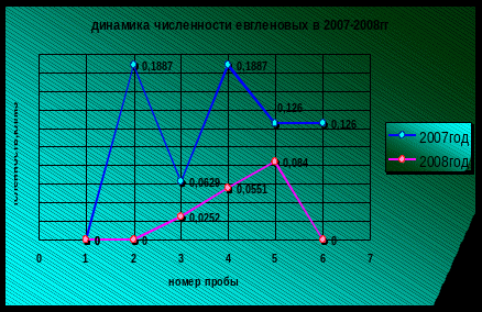 Диаграмма 12 Динамика численности евгленовых в 2007-2008гг