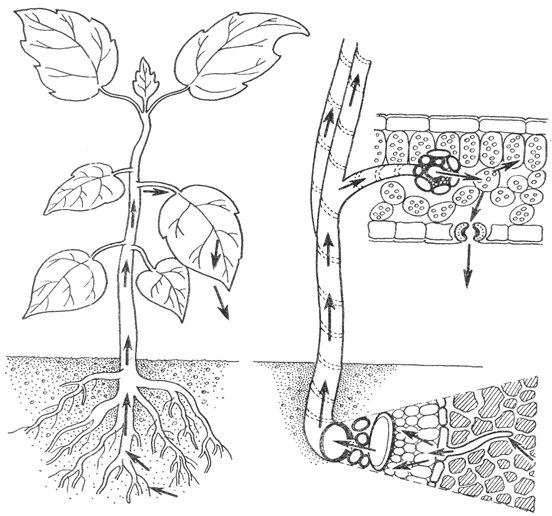 2.Транспирация создает непрерывный ток воды из корневой системы к листьям, который связывает все органы растения в единое целое.