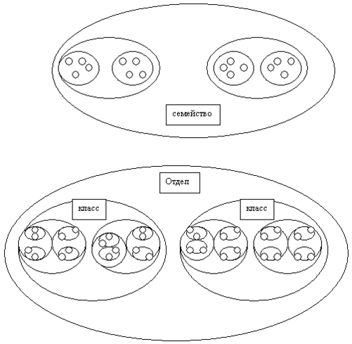 Систематические категории можно показать во взаимосвязи следующим образом: